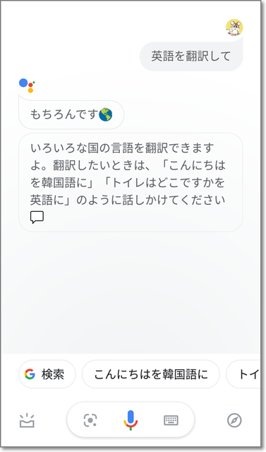 めんどくさくなっちゃって、「Google翻訳を起動して」とリクエスト。