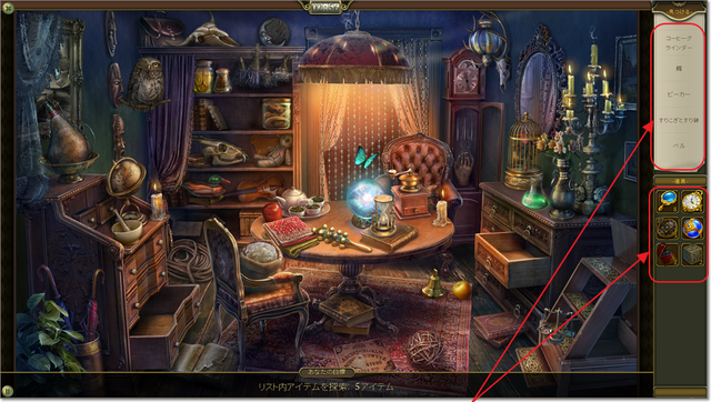 見つからないときは、右下の道具を使います。