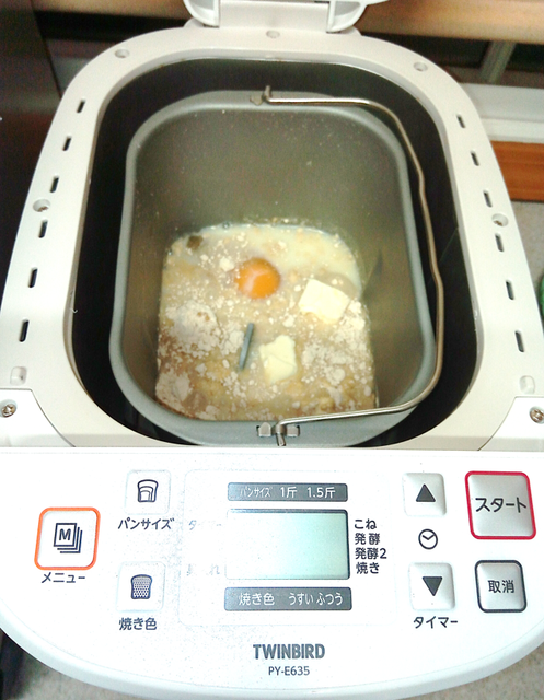 ホームベーカリーのお釜(?)に、次の順に突っ込んでいきます。