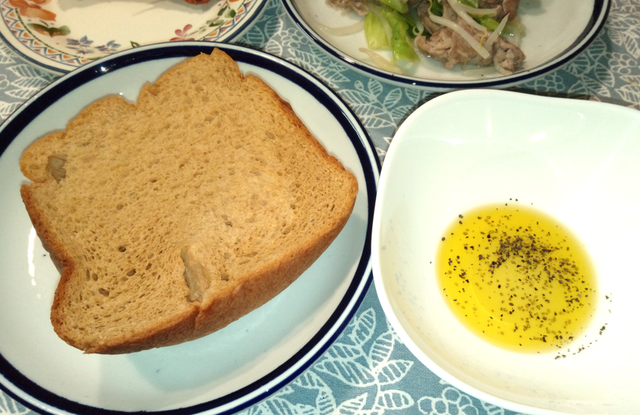 晩ごはんはだいたい家族と同じおかずで、ご飯のかわりにブランパン。