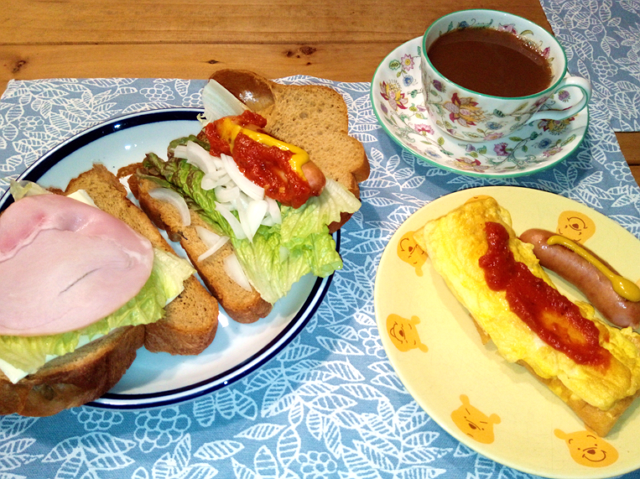 タンパク質の量を考えて、もう1つはホットドッグ。