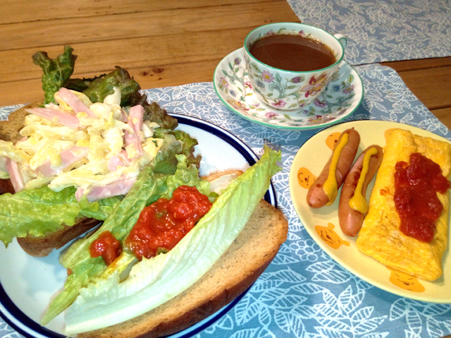 1つめは、ハム+スライスチーズ+レタス+ハムを載せただけ。