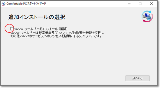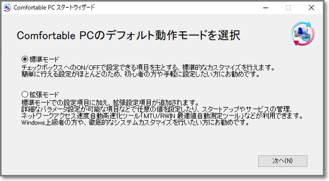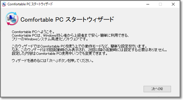 →解凍してできる「comfortable pc.exe」を実行します。
