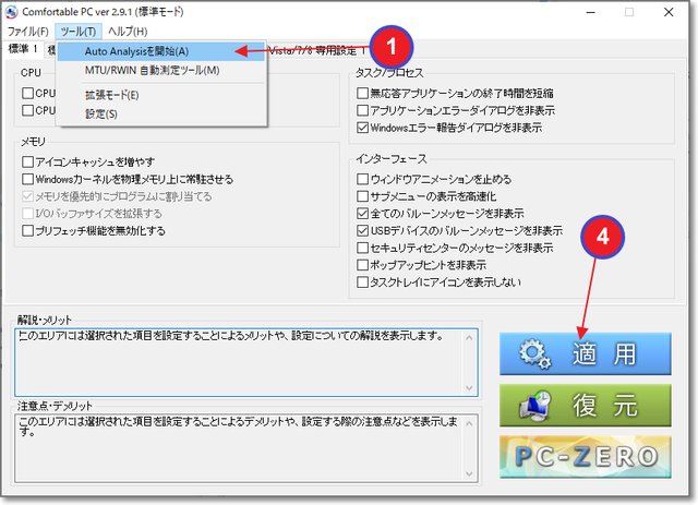 4.結果を確認して(といっても、よくわからない)「適用」。