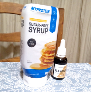 手元にあったのが、だいぶ前に買ったマイプロのシロップ(ゴールデンシロップ味)と、