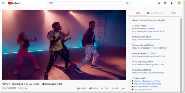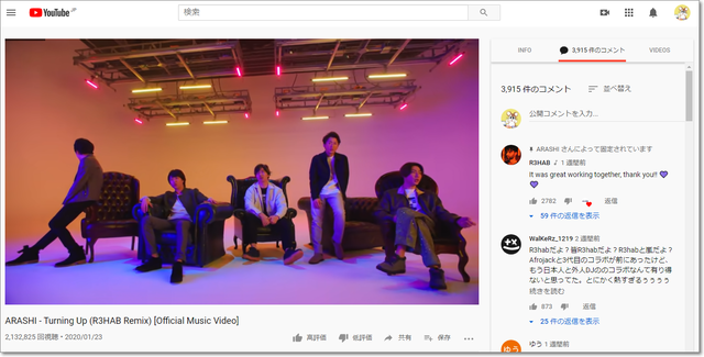 YouTubeの動画を開くと、右カラムは通常は関連動画などが表示されます。
