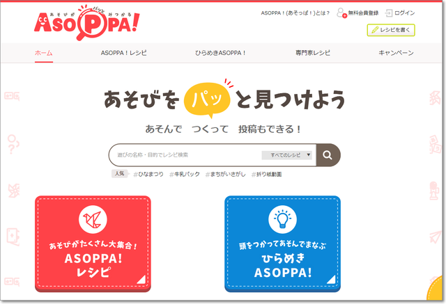 子どもからおとなまで、ほのぼの楽しい遊びをさがせるサイト。