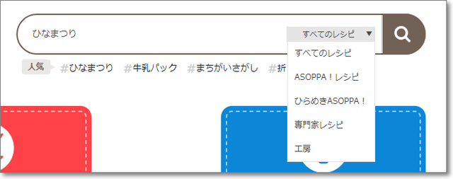 検索欄にキーワードを入れ、ジャンルを選んで検索します。