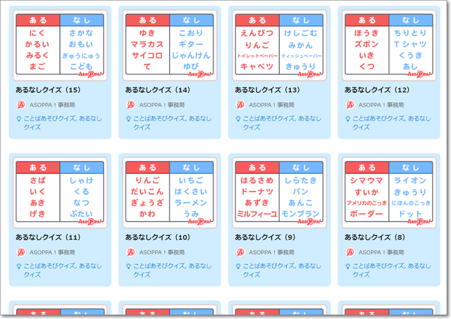あれこれ見て回って、たとえば「あるなしクイズは、おもしろそう」と思ったら・・・