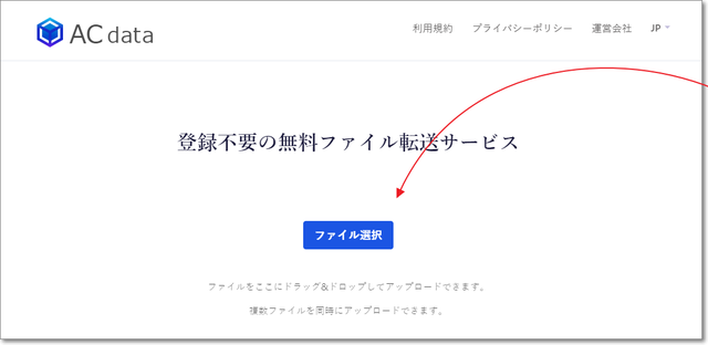 登録不要、大容量でとてもわかりやすい、ファイル転送サービス。