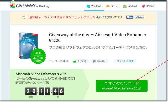 有料ソフトですが、Giveaway of the Dayのページで、