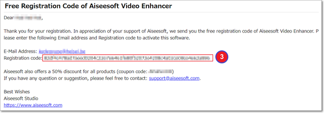 3.メールが届くので、「Registration code」をコピーして、