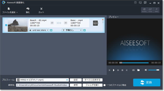 「ファイルを追加」で動画ファイルを指定し、