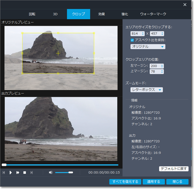 「クロップ」で、一部をクローズアップ。