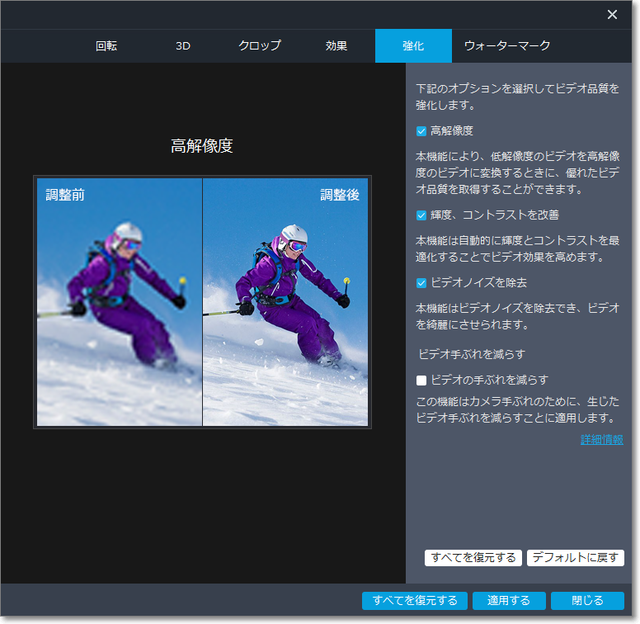 「強化」で、ノイズ除去など。