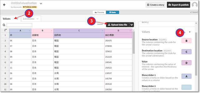 ・値ファイル=「年月」「出発地(日本)」「目的地」「人数」