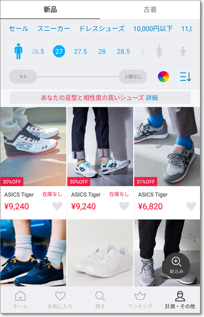 そして、気に入ったシューズの「すべての商品を見る」で、販売ページへ。