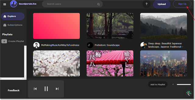 右上「Sign Up」でアカウント登録すると、プレイリストを使えるようになります。