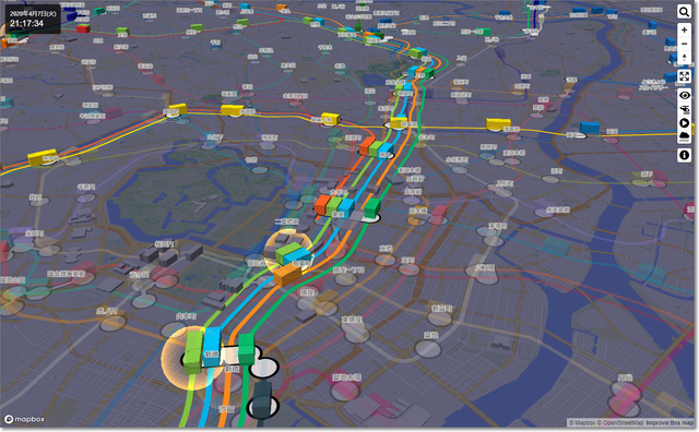列車の運行状況を3D表示
