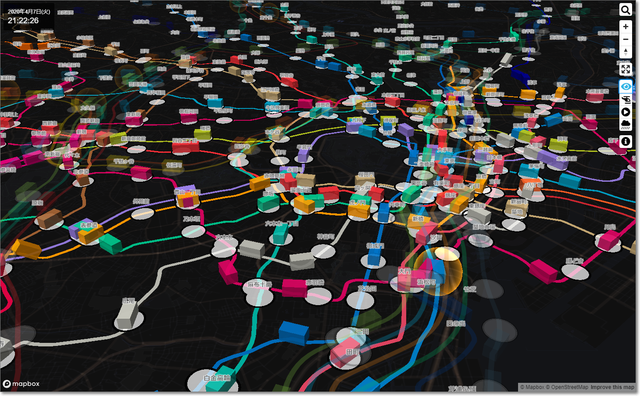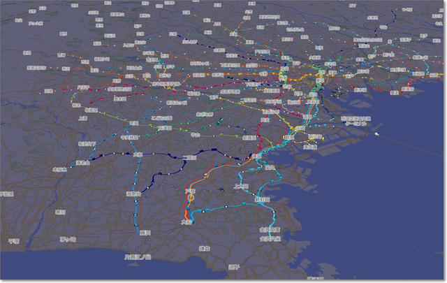 首都圏の列車の運行状況を、3D表示してくれるサイト。