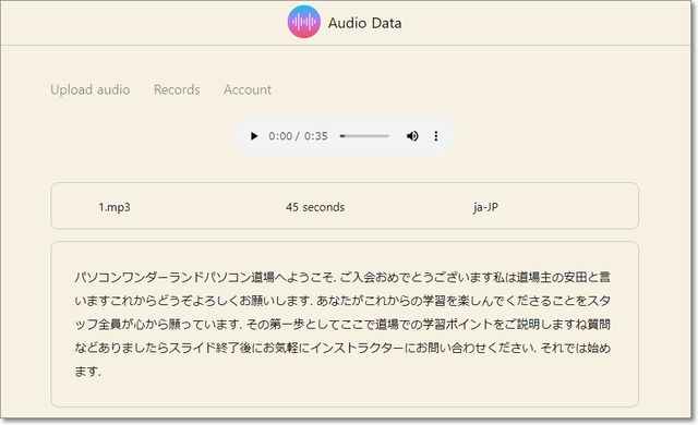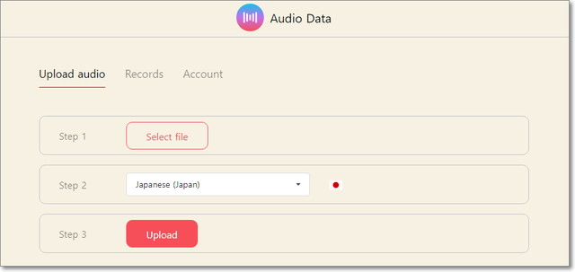 Step1=「Select file」をクリックして、音声ファイルを選択。