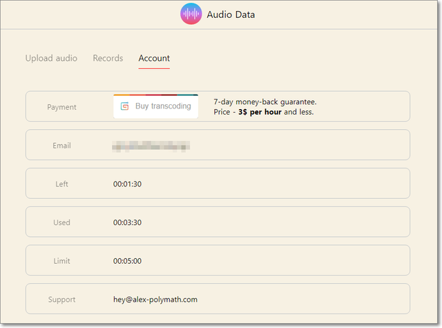 「Account」タブに、あと何秒残っているか(Left)、書いてあります。