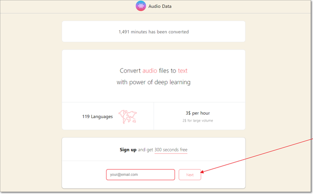 Step1=「Select file」をクリックして、音声ファイルを選択。