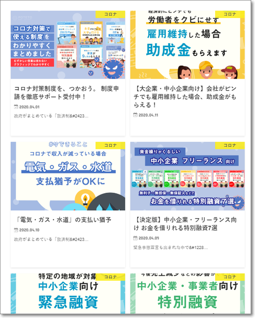 コロナ対策のいろいろな助成制度等を、まとめて紹介しているサイト。