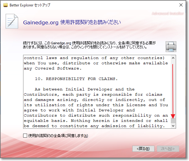 「使用許諾契約の全条項に同意します」にチェックできないので注意。