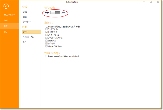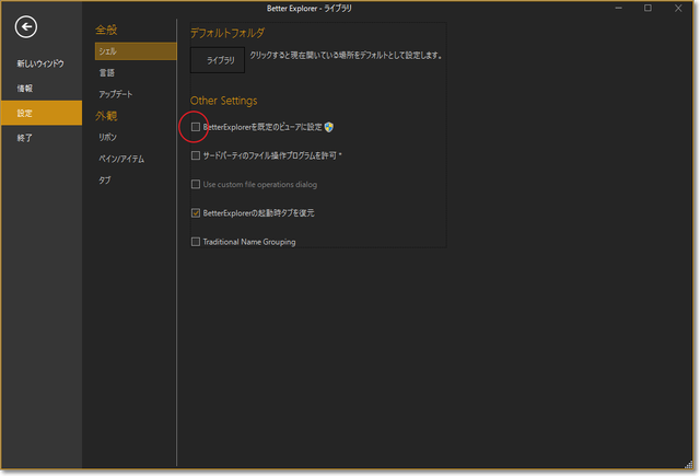 「シェル」で、「Better Explorerを既定のビューアに設定」にチェックすると、