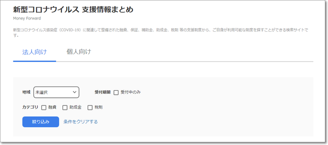 コロナ対策のいろいろな助成制度等を、まとめて紹介しているサイト。