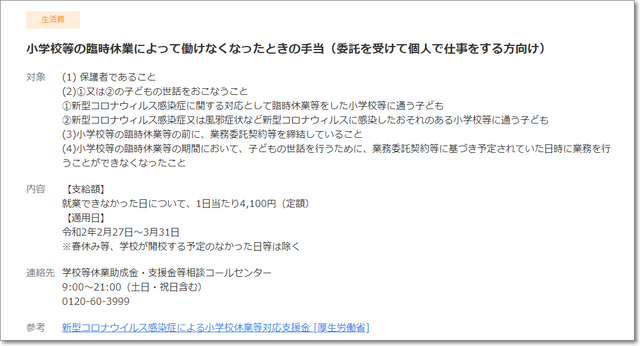 「小学生の保護者(フリーランスのかた)の休業」の補償。