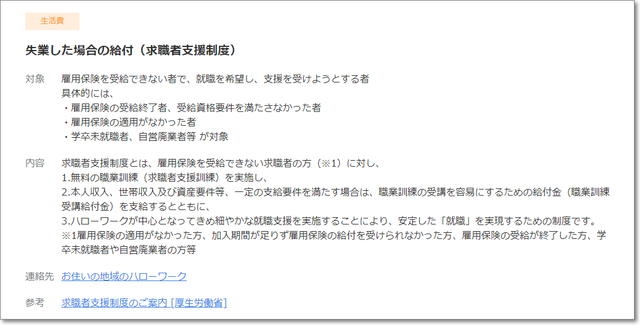 失業保険が受けられない人も、離職してしまったときにサポートしてくれる。