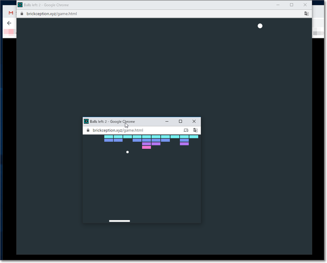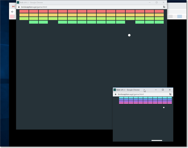 小さいウィンドウと大きいウィンドウ、2つとも同時にブロック崩しをします。