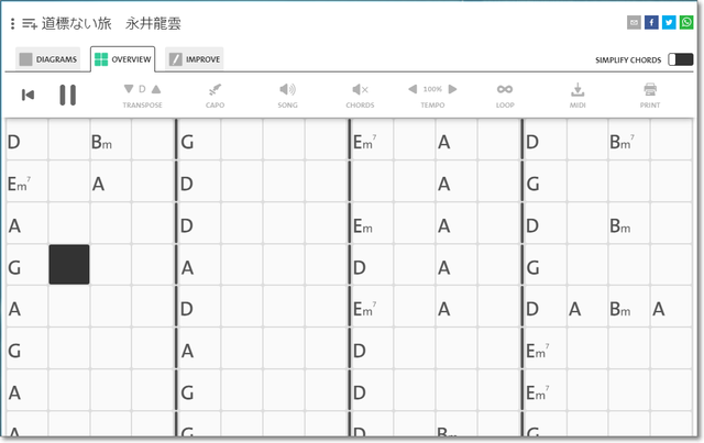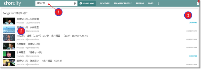 なお、3の部分が「Chordified」なら、すでにコード化されているのですぐ表示。