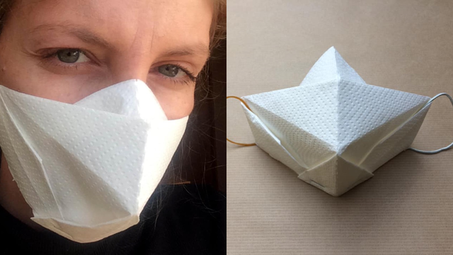 「キッチンペーパーで折って作るマスク」が、ツイッターで紹介されていました。