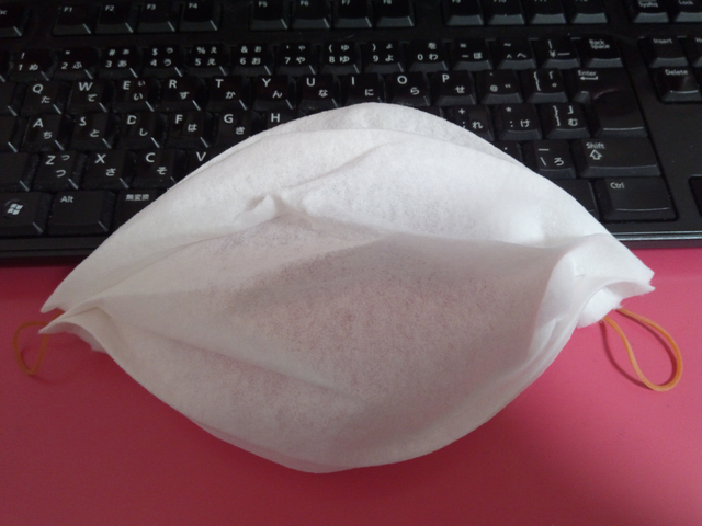 輪ゴムを2連結にすれば、顔が大きいボクでもいい感じ。