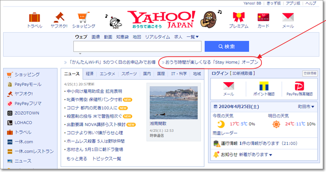 Yahoo!のトップページでも、検索窓の下にリンクがあります。