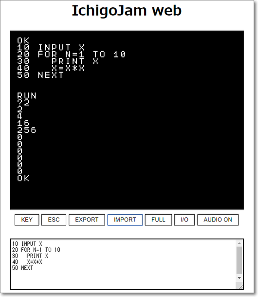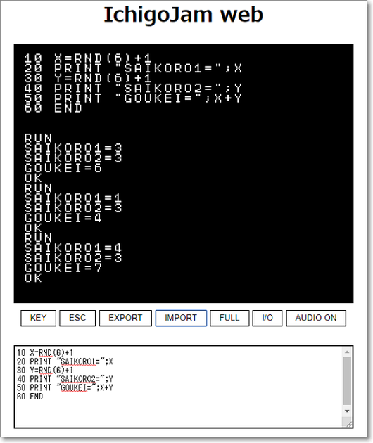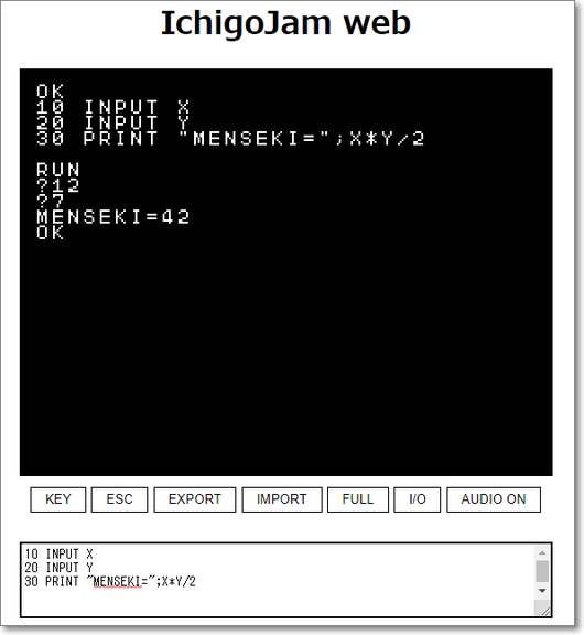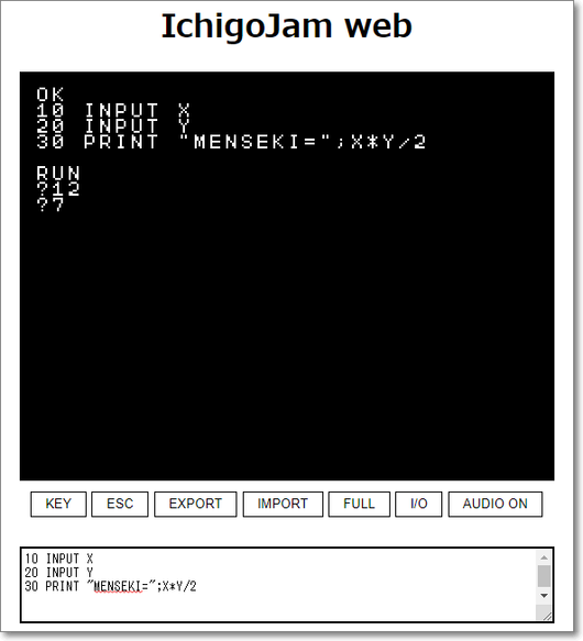 IchigoJamのプログラミング部分をWebで楽しめるサービスです。
