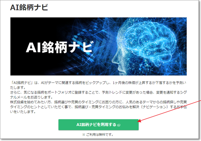 「AI銘柄ナビを利用する」をクリック。