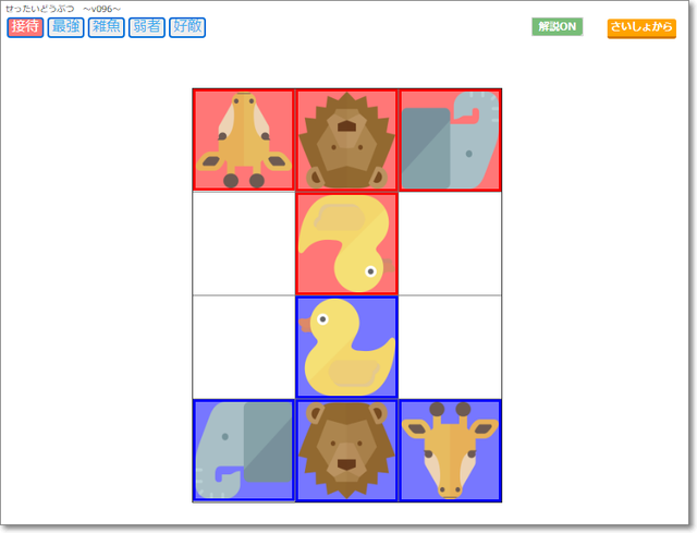 左上「接待」を選ぶと、こちらに合わせて手加減をし、