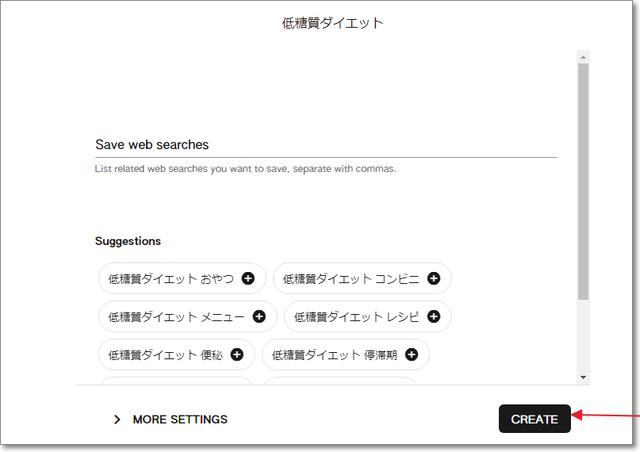 「Suggestions」でもっと絞り込んだ形のキーワードを提案してきますが、