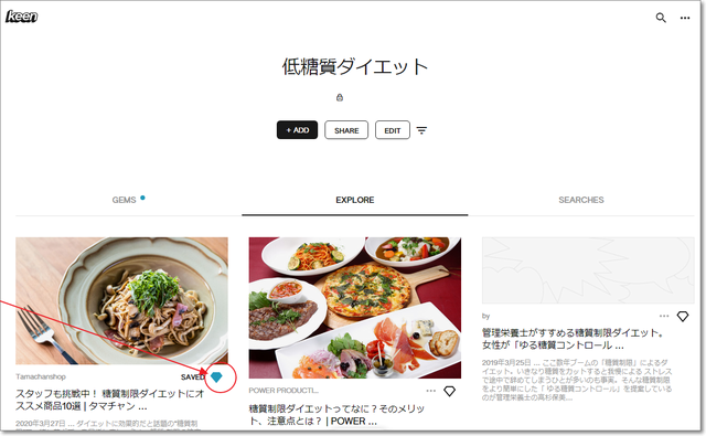 気に入ったサイトの右下にあるGEM(ジェム・宝石)アイコンをクリックすると、