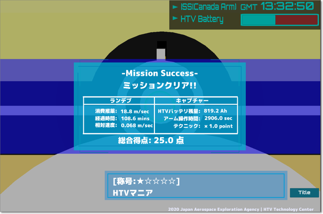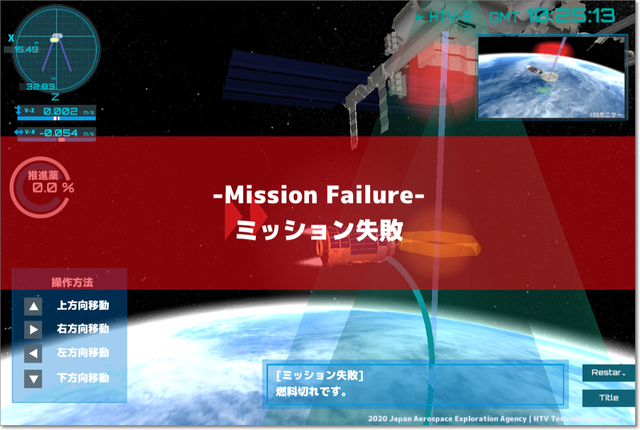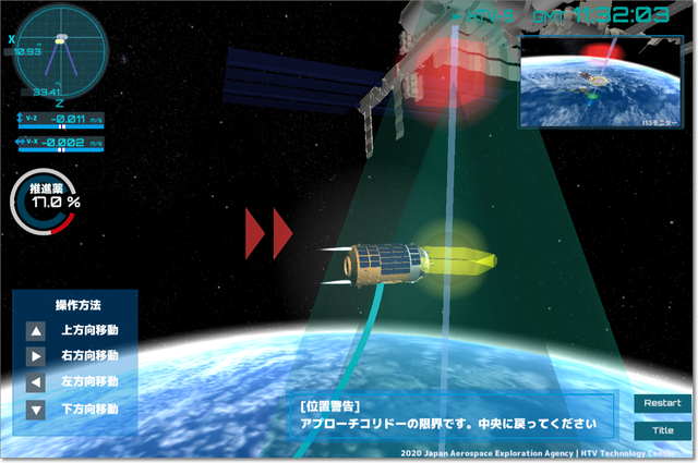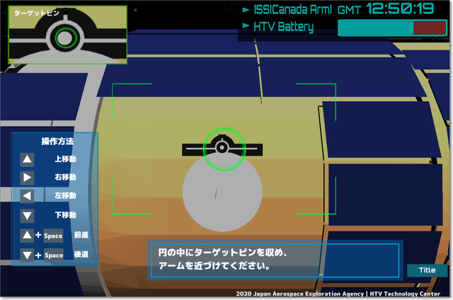 補給機「こうのとり(HTV)」を宇宙ステーション(ISS)に送り届けるゲーム。