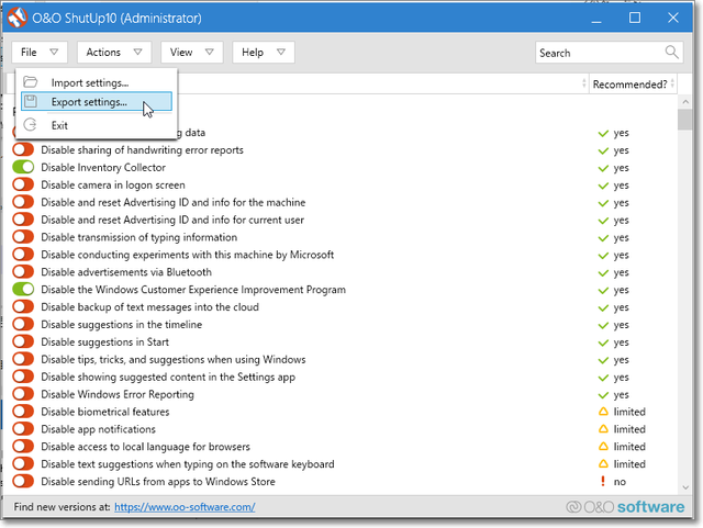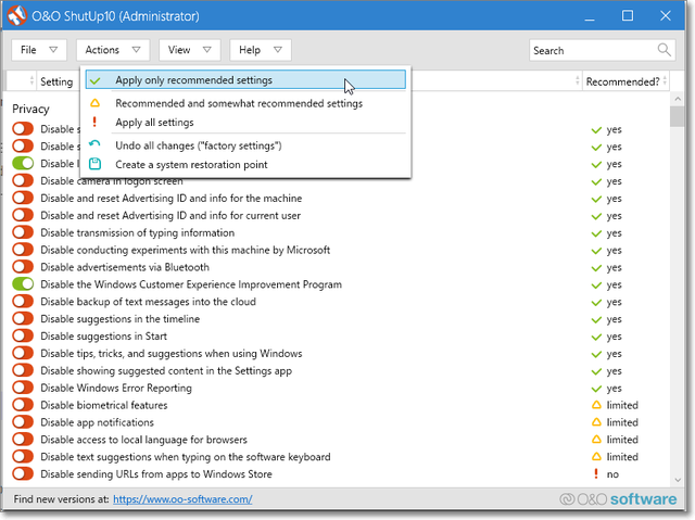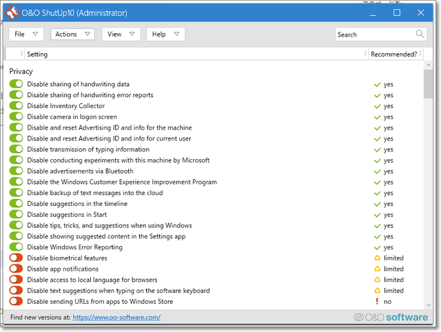Windows10のプライバシー設定を、手軽に整理できるソフト。