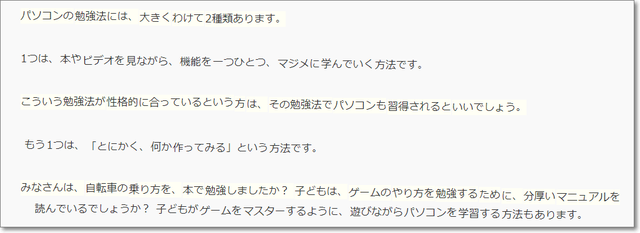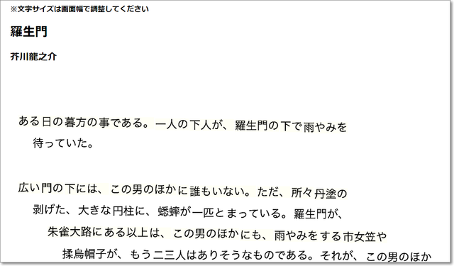 「名作文学で~」をクリックすると、いくつかの文学作品で、例を見られます。