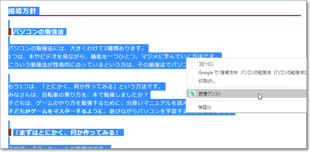 インストールしたら、文章を選択→右クリック→「読書アシスト」で・・・