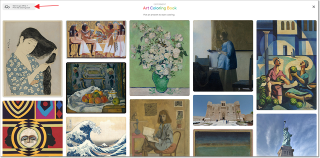 ブラウザでは、リストから塗り絵したい名画をクリック。
