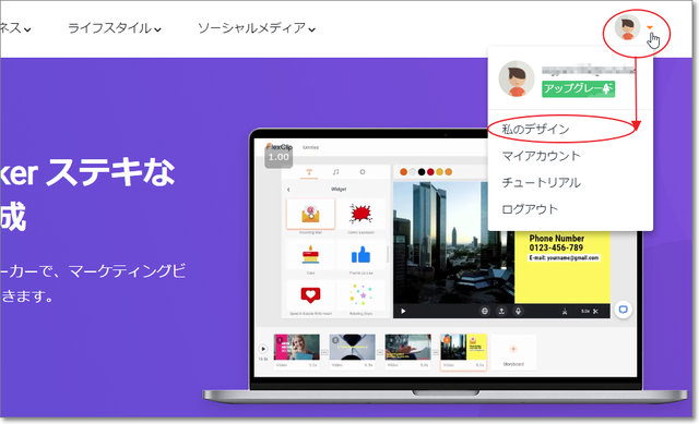 ログインして、「私のデザイン」で編集ページへ。