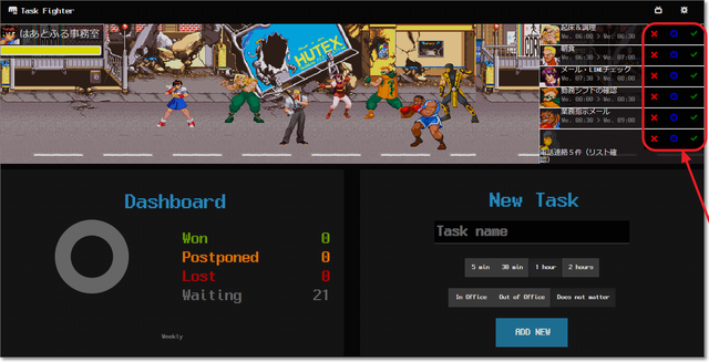 タスクが終わるたびに、「1人やっつけた(^^)v」。